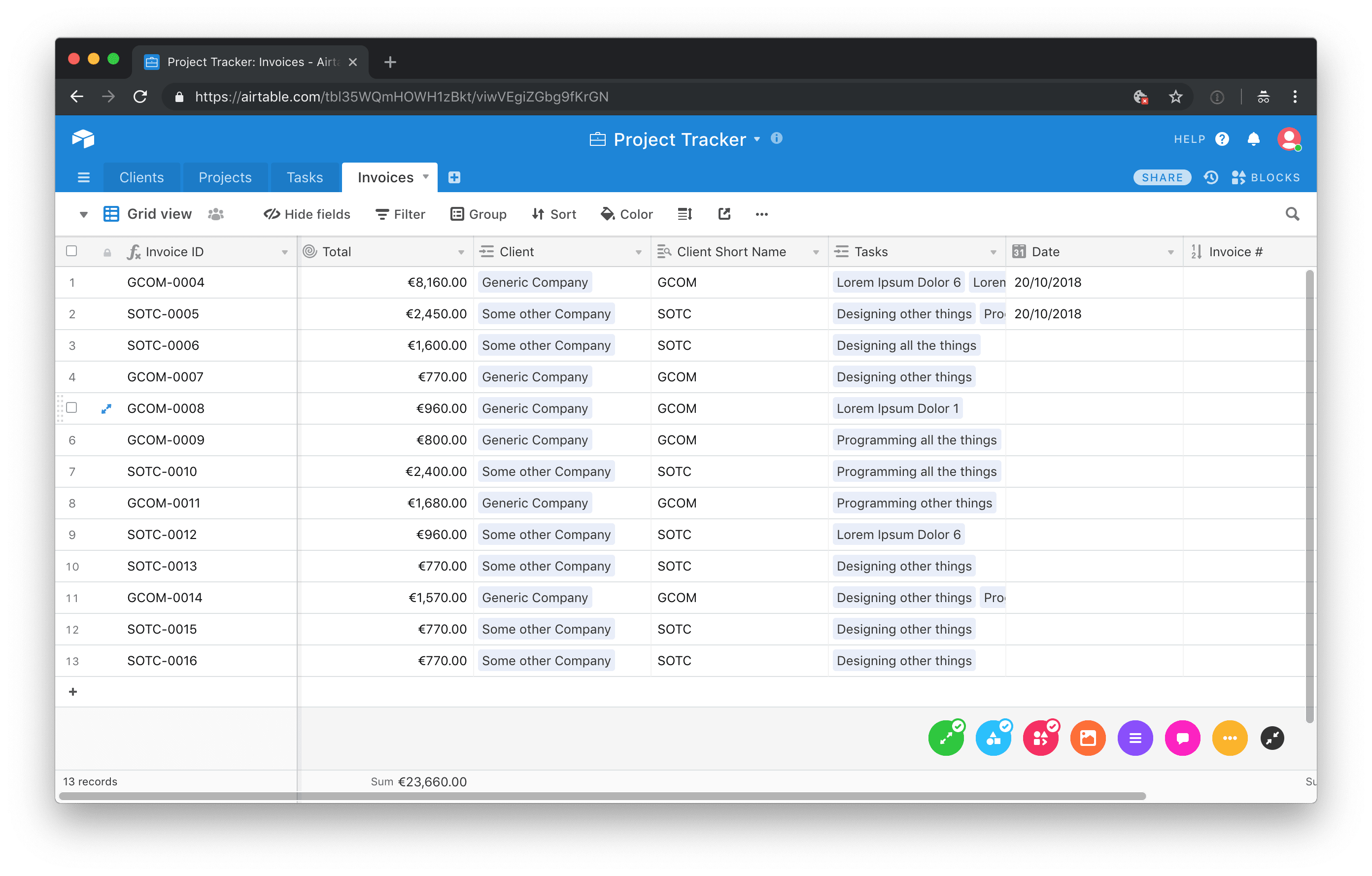 Although we’re using a different tool for project management, I’m planning on using Airtable for client management. I basically followed this official guide by Airtable on how to set up a client management base. So I don’t want to go into much detail on how to set up Airtable, please read the official documentation if you need more information about this topic.