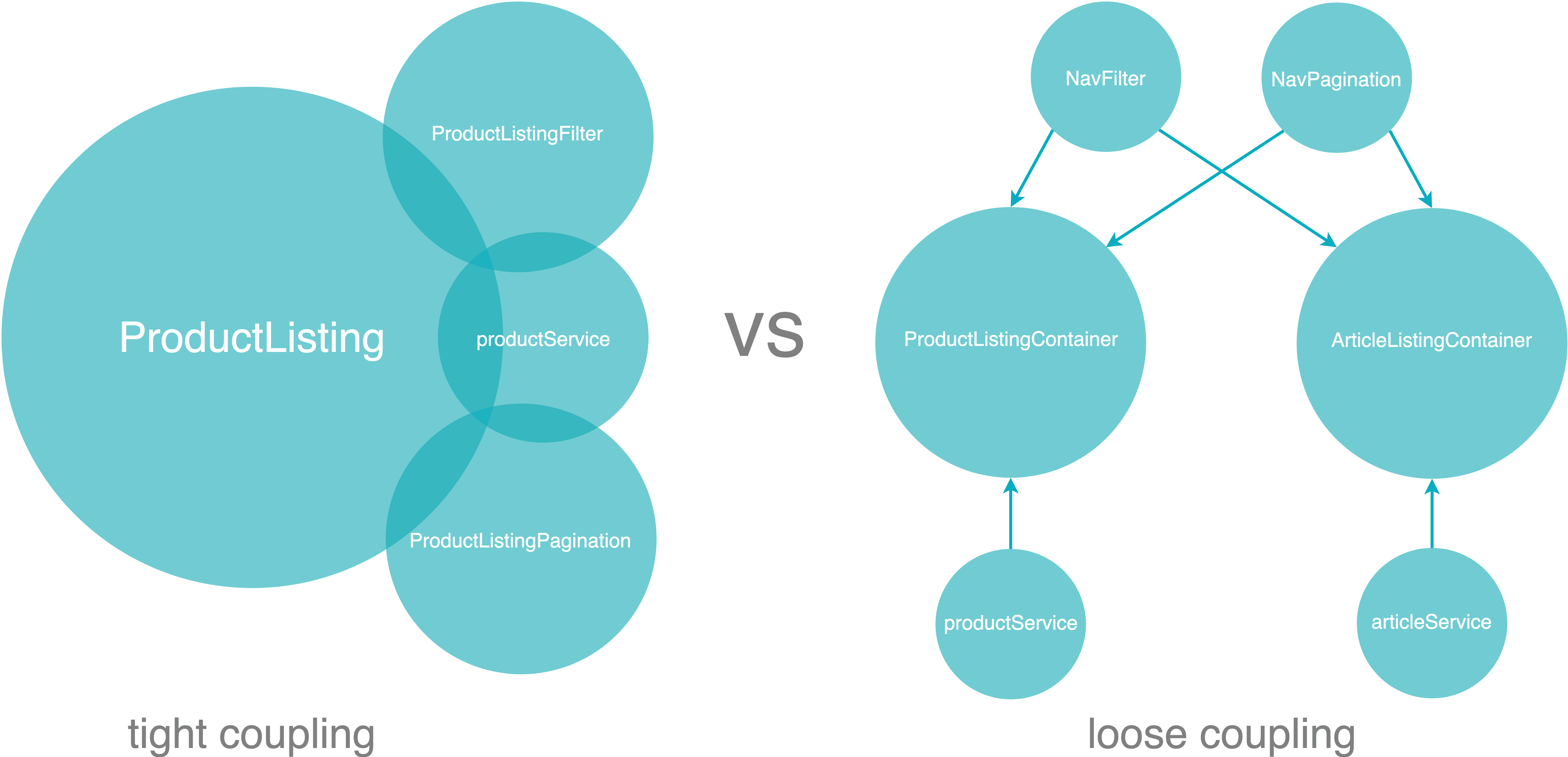 You can see that we could easily reuse the NavFilter, EntityList and NavPagination components because they’re completely decoupled from any data fetching logic. It would be very straightforward to create a new ArticleListingContainer component by simply reusing the components that already exist.